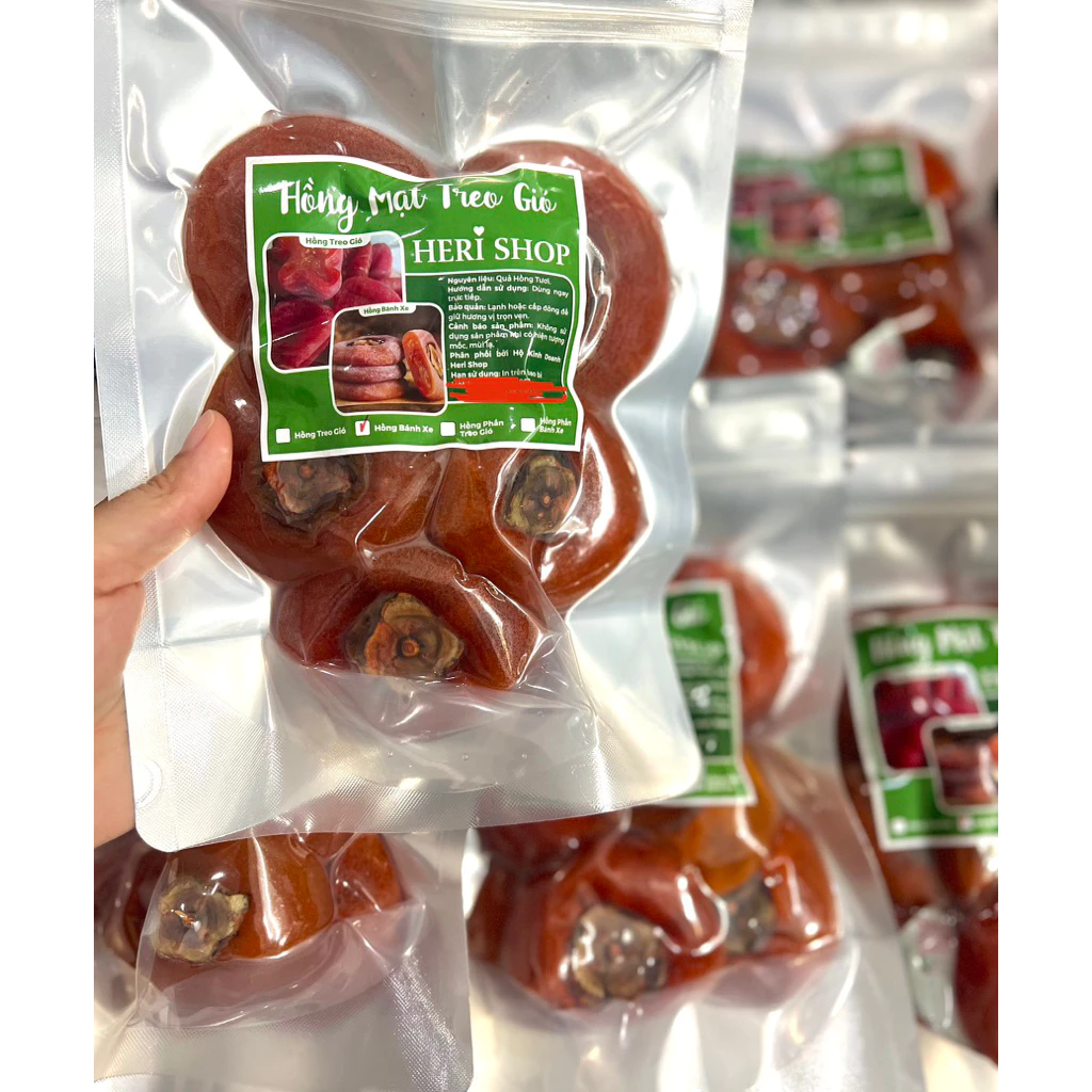 Quả hồng được chọn lọc kỹ lưỡng từ những trái vừa chín tới, đều quả, cuống còn xanh và vẫn giữ được độ ngọt tự nhiên. Sau đó được làm sạch, treo lên dây và sấy theo quy trình phù hợp để tạo nên hồng dẻo bánh xe thơm ngon, mềm dẻo.