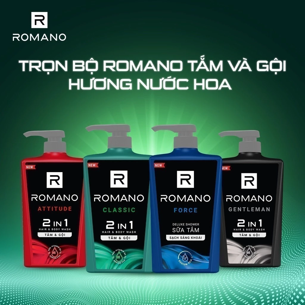 Romano là thương hiệu hóa mỹ phẩm dành riêng cho nam giới của Tập đoàn đa quốc gia Wipro Unza – một trong những nhà sản xuất và tiếp thị sản phẩm chăm sóc cá nhân hàng đầu Đông Nam Á. Với danh mục sản phẩm đa dạng, bao gồm sản phẩm chăm sóc tóc, chăm sóc da, gel vuốt tóc, lăn khử mùi, nước hoa,… Romano giúp chăm sóc cơ thể toàn diện cho phái mạnh, giúp phái mạnh tự tin vượt qua mọi thử thách để làm chủ cuộc chơi.